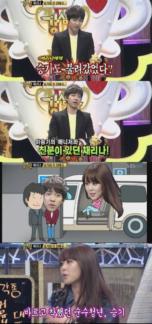 그러자 이승기는 채리나에게 불려간 적이 있다고 말하며 “당시 매니저가 채리나와 친한 사이였다. 잘 부탁한다고 인사하기 위해 채리나 차에 탔었다”고 전했다.