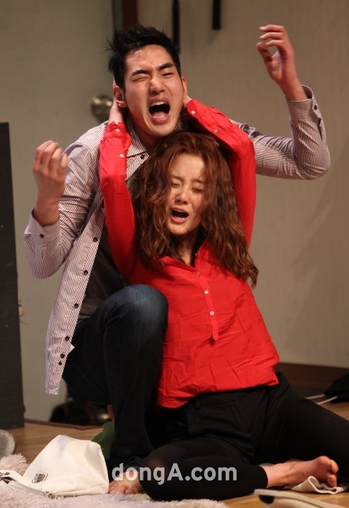 배우 여욱환과 연극 배우 홍예나가 3일 오후 서울 대학로 아트원씨어터에서 열린 연극 ‘극적인 하룻밤’ 프레스콜에서 열연을 펼치고 있다.