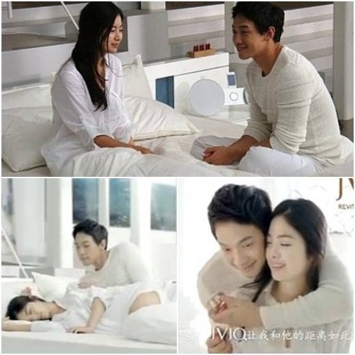 이는 중국 JVJQ 화장품 광고 촬영현장으로 두 사람은 다정한 연인의 콘셉트에 맞게 로맨틱한 분위기를 연출했다..