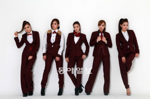 긴 팔, 긴 바지 정장을 입는 걸 그룹. 5인조 걸 그룹 브레이브 걸스(은영, 혜란, 예진, 서아, 유진)다.
