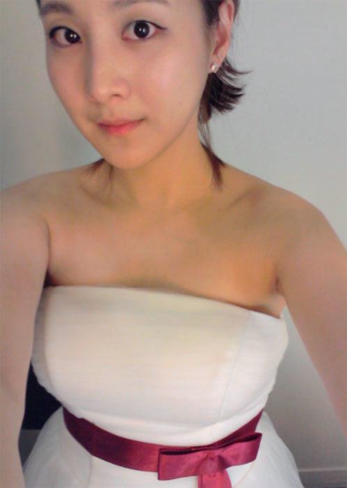 노희지는 3일 자신의 트위터에 “사진 촬영 중 한 컷! 드레스는 역시 이뿌닷♥.♥”라는 글과 함께 사진을 공개한 것.