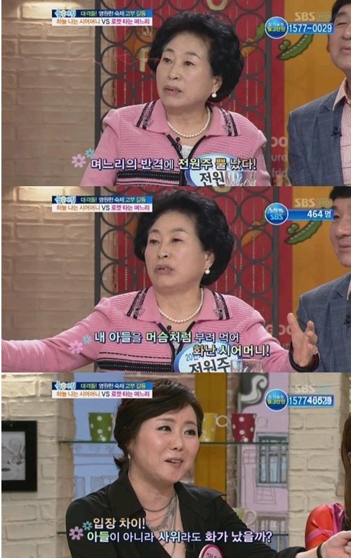 이에 현미는 “고쳐야해. ‘어머니 점심때 다녀가셨네요. 감사해요’ 라고 말하면 되잖아”라고 반박하자 윤영미는 “오실 때 전화 한통만 주시면”이라고 말했고 시어머니들의 분노는 가시지 않았다.