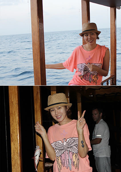공개된 사진 속 손예진은 분홍색 박스티셔츠에 핫팬츠 차림으로, 낚시를 즐기며 어린아이처럼 좋아하는 모습이었다. 몰디브의 뜨거운 태양때문에 피부가 살짝 타긴 했지만, 눈에 띄는 미모만은 여전했다.