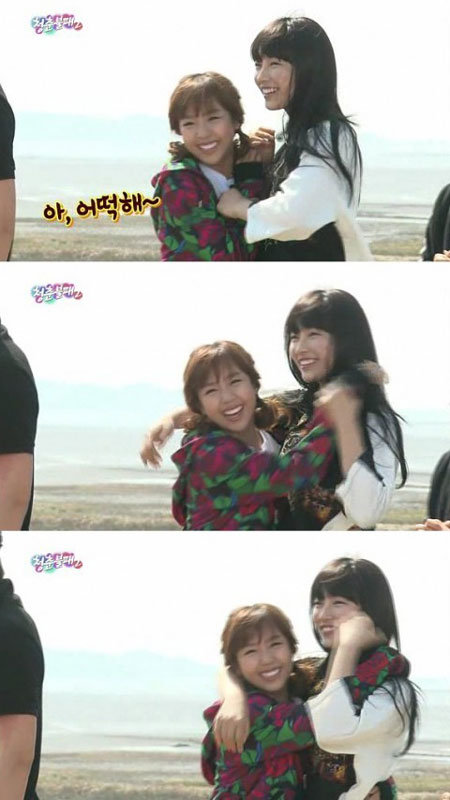 하지만 둘 뿐인 수지와 예원은 진한 우애를 자랑했다. 특히 예원은 녹화에 참석하지 못한 G6멤버들을 대신할 게스트가 소개되자 "아, 어떡해"라고 소리치며 수지에게 안겼다. 아이돌 멤버들 중 키가 큰 편인 수지는 예원을 꼭 껴안았다. 남자 못지 않은 박력이었다.