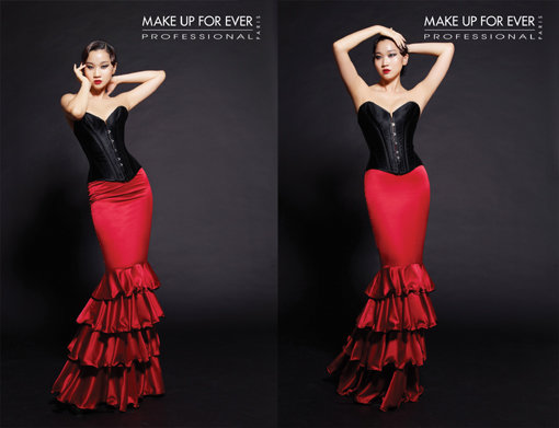 이 화보는 이번 가을 시즌 메이크업 포에버의 한정 컬렉션 ‘블랙 탱고’를 위해 촬영한 것으로, 아르헨티나의 탱고 무용수에게서 영감을 받은 그윽한 눈매와 섹시한 레드립으로 클래식하면서도 고혹적인 메이크업 룩을 표현하였다.