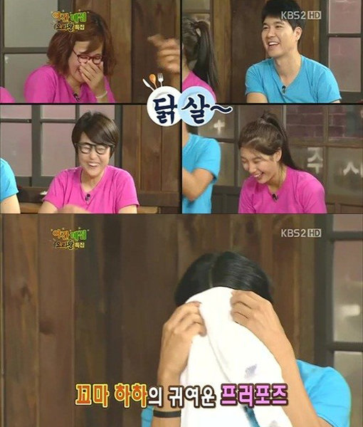 하하는 프러포즈 방식을 자세히 설명해달라는 요청에 "별 앞에 무릎을 꿇고 진심을 담아 '내 마지막 사랑이 되어줘'라고 말했다"는 하하는 수건으로 얼굴을 가리며 쑥스러움을 감추지 못했다. 쏟아지는 야유와 함께 게스트들의 웃음이 끊이지 않았다.