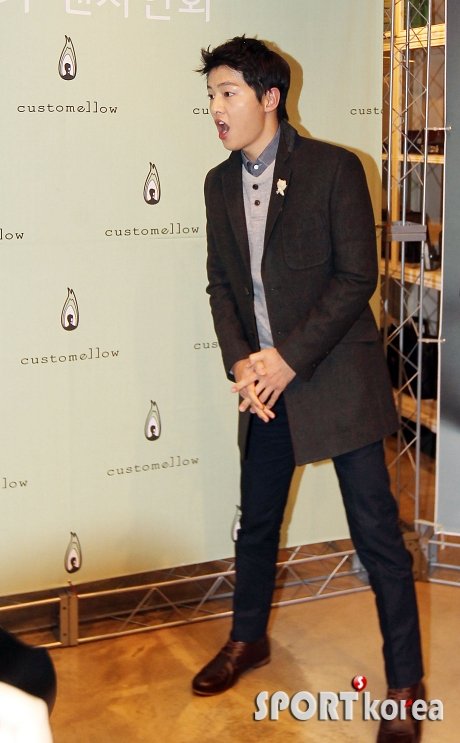 배우 송중기가 16일 오후 서울 마포구 커스텀 멜로우 에이치 스토어에서 열린 재능기부 사인회에 참석한 송중기가 몰려든 팬들을 보고 깜짝 놀라고 있다.