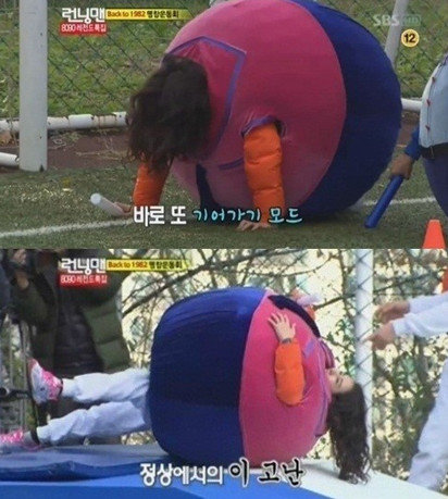 방송은 런닝맨팀과 레전드팀으로 나뉘어 경기를 했다. 큰 공모양의 인형을 몸에 입고 게임을 펼치던 김완선이 몸개그를 선보여 큰 웃음을 줬다.