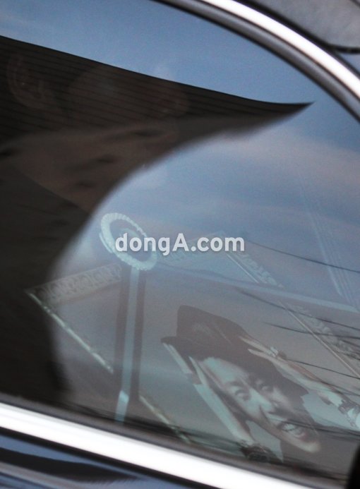 멤버 박승일이 운구차량에서 영정 사진을 든채 이동하고 있다.