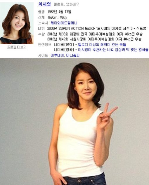 배우이자 복서인 이시영의 인터넷 포털 사이트 프로필이 화제 되고 있다.