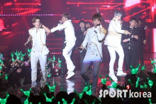 그룹 B.A.P가 24일 오후 5시 서울 송파구 방이동 올림픽홀에서 열린 첫 단독콘서트에 출연해 멋진 무대를 선사하고 있다.