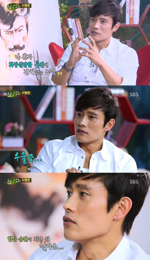 이날 방송에서 이병헌은 “‘아름다운 날들’이라는 드라마가 끝날 무렵이었다. 즐거운 상황이었는데 어느 순간 뭔가 퍽 찾아왔다. 이 세상에 아무도 없고 나 혼자 화장실만한 공간에 갇혀 있는 느낌이었다. 지나고 보니 우울증이었다”고 말했다.