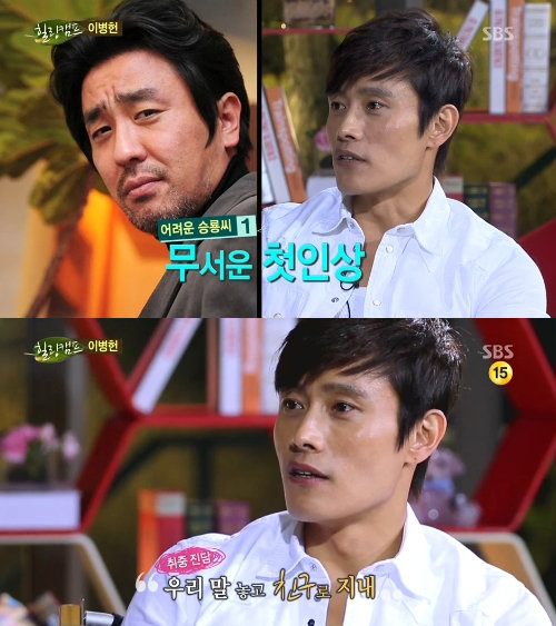 이병헌은 18일 방송된 SBS '힐링캠프, 기쁘지 아니한가'에서 영화 '광해, 왕이 된 남자'에 함께 출연한 류승룡과 44세 동갑이라며 "사실 첫인상이 무서웠다. 나보다 나이가 많은 줄 알았다"고 말했다.