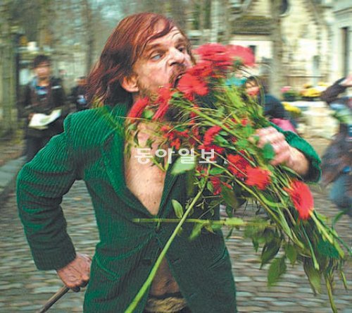 ‘홀리 모터스’에서 드니 라방은 꽃을 우걱우걱 씹으며 달리는 광인으로도 변신했다. 영화사 오드 제공영화는 개봉 전부터 국내에서도 화젯거리다. 영상물등급위원회(영등위)는 영화에서 라방의 성기가 약 30초간 노출된다는 이유로 제한상영가 판정을 내렸다. 수입사인 오드는 이 장면을 블러(영상을 뿌옇게 만드는 것) 처리해 영등위에 재심의를 요청했다. 라방을 e메일로 만났다.