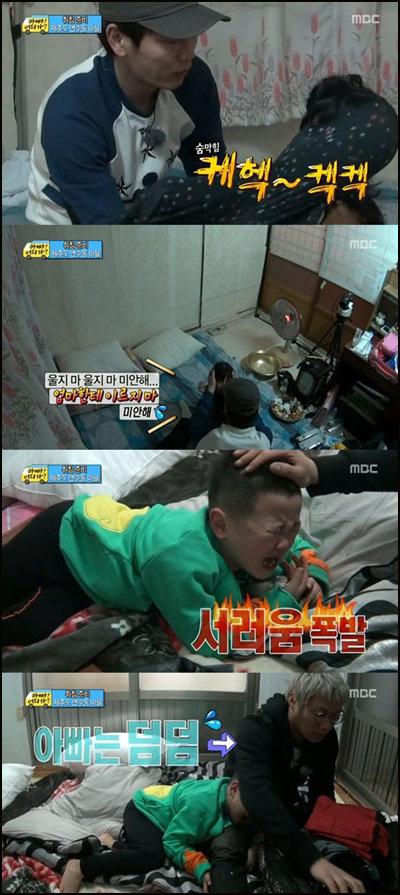 이날 방송에서 송종국은 지아의 옷을 갈아입히던 중 꽉 끼는 옷 때문에 지아를 울렸다. 송종국은 머리카락이 엉킨 지아가 눈물을 터뜨리자 어쩔 줄 몰라했다. 송종국은 “울지마. 울지마 미안해. 엄마한테 이르지마. 미안해”라며 지아를 달랬다.