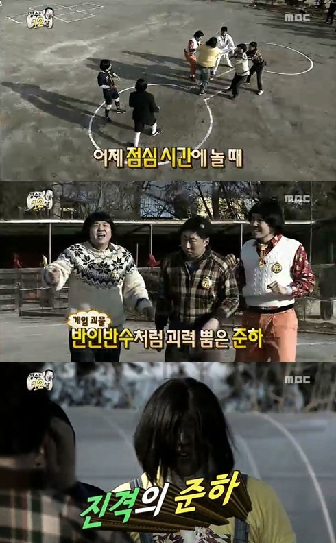 점심시간에 함께 게임하며 놀 때 정준하는 놀라운 괴력을 발휘했기 때문. 이때 ‘진격의 준하’라는 자막이 나와 누리꾼에게 웃음을 준 것이다.