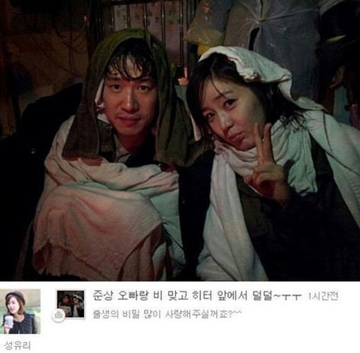 홍은희가 올린 사진은 성유리가 미투데이를 통해 유준상과 함께 찍은 사진을 캡쳐한 것. 유준상과 성유리의 다정한 포즈가 눈길을 끈다. 성유리와 유준상은 SBS 주말드라마 '출생의 비밀'에서 각기 남녀 주인공으로 호흡을 맞추고 있다. 성유리와 유준상은 사진 속에서 비에 젖은 채 수건으로 몸을 둘둘 만 채 카메라를 바라보고 있다.