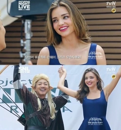 미란다 커는 15일 tvN 라이브코미디쇼 'SNL 코리아'(안상휘 CP) 호스트 이범수 편에 출연했다.