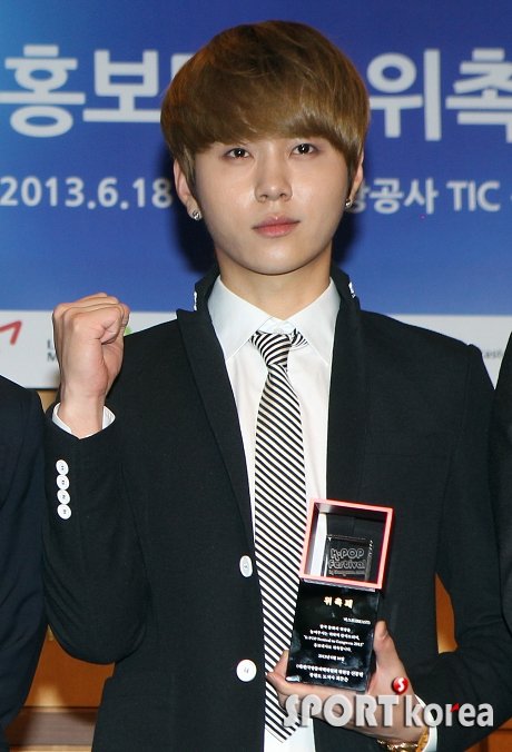 가수 비스트 용준형이 18일 오후 서울 한국관광공사에서 ‘K-POP 페스티벌 인 강원 2013’ 홍보대사로 위촉된 후 위촉패를 들고 파이팅을 외치고 있다.