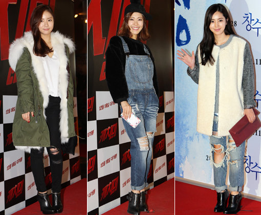 연기자 신세경은 최근 한 영화 시사회에 참석하며 영하의 추위에도 양쪽 무릎이 찢어진 블랙 진을 입어 시선을 사로잡았다. 게다가 허리부터 발목까지 꽉 조이는 디자인으로 각선미를 한껏 드러냈다. 연기자 정려원의 선택도 비슷하다. 허벅지와 종아리의 매끈한 라인을 강조한 블랙 진을 입고 서울의 한 극장을 찾은 모습이 포착돼 눈길을 끌었다.