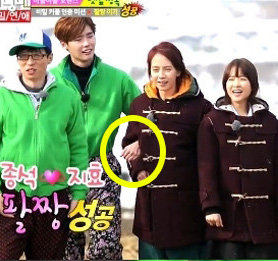 이날 비밀 연애를 들키지 않고 스킨십에 성공하라는 지령을 받은 송지효 이종석은 게임이 진행되는 동안 다른 멤버들 모르게 팔짱 끼기, 손깍지 끼기, 이마 키스 등의 긴장 넘치는 스킨십을 능청스럽게 수행했다.