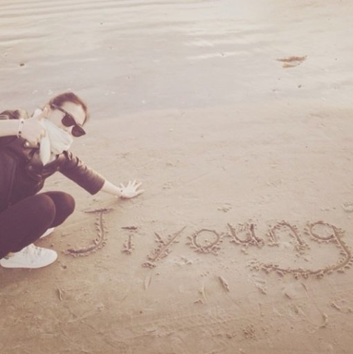 공개된 강지영 근황 사진 속에서 강지영은 모래사장 위에 자신의 이름을 남긴 채 엄지 손가락을 들고 카메라를 응시하고 있는 모습. 특히 모두 검은 색 의상을 입은 채 목도리와 선글라스로 얼굴을 가렸지만 변함없는 미모는 네티즌들의 시선을 끌기에 충분했다.