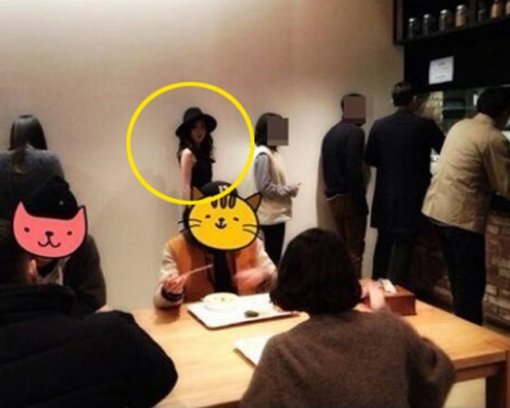 이 사진에는 YG엔터테인먼트 건물 내에 있는 식당에서 밥을 먹기 위해 줄을 서있는 산다라박의 모습이 담겨있다. 특히 직원들 사이에서 커다란 창 모자를 쓰고 카메라를 응시하고 있는 산다라박의 포즈가 눈길을 끈다.