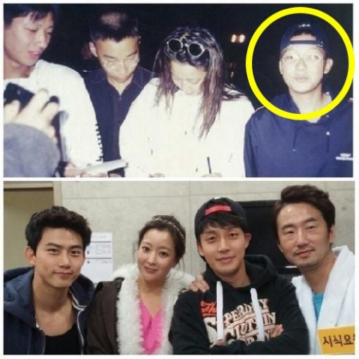 두 번째 공개된 사진은 최근 사진으로 허경환은 옥택연, 김희선, 류승수와 함께 포즈를 취하고 있다.