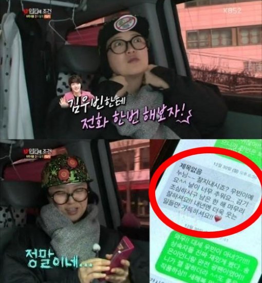 개그우먼 김숙과 배우 김우빈의 문자가 화제다.