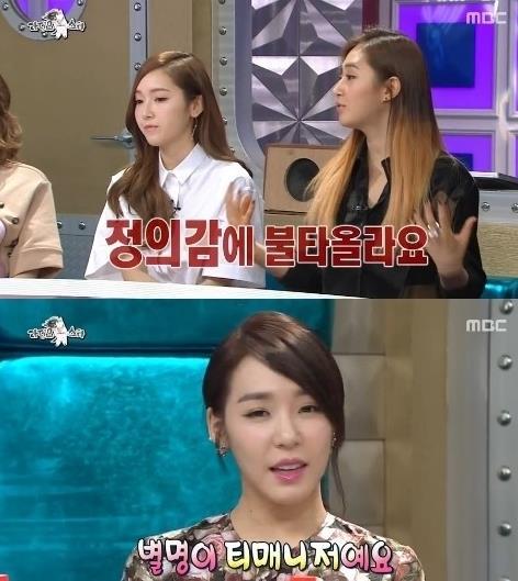 특히 이날 방송에서 유리는 “일이 생기면 누군가가 얘기하기 전에 티파니가 이미 얘기하고 있다”며 “티파니는 팀에 대해 얘기할 때 정의감에 불타오른다. 그래서 별명이 ‘티매니저’”라고 밝혀 눈길을 끌었다.