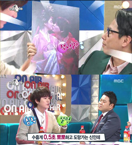 이날 '라디오스타'에서는 과거 뮤지컬에 함께 출연한 MC 규현과 소녀시대 서현의 키스신 사진이 공개됐다.