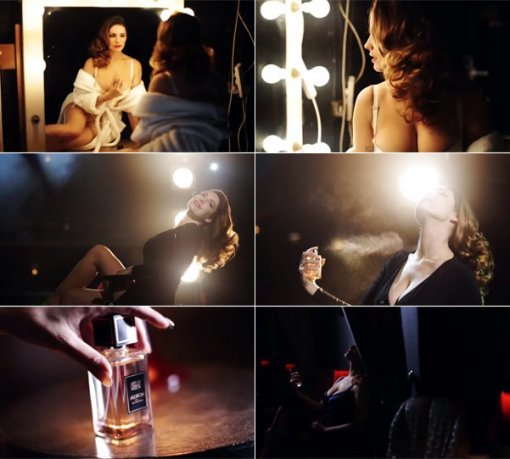 탐스럽게 웨이브 진 긴 갈색 머리의 켈리 브룩은 새 향수 홍보 영상에서 풍만한 가슴을 강조하는 화려한 드레스를 입고 관능미를 발산한다.