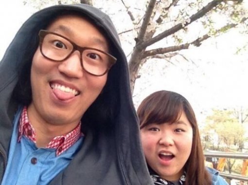 공개된 사진 속 김경진은 후드티를 뒤집어쓴 채 카메라를 향해 혀를 내밀고 있는 모습이다. 김경진의 뒤에는 그의 연인 양해림이 놀란 듯한 모습이 담겨 있어 눈길을 끈다.