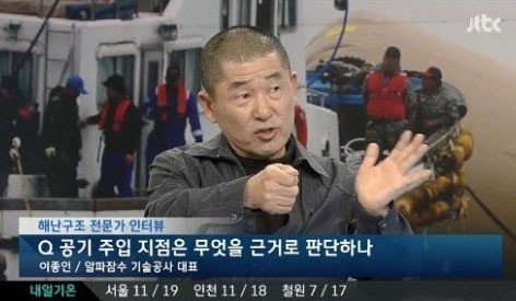지난 18일 방송된 JTBC ‘뉴스9’에는 이종인 대표가 출연해 “조타실에 해당하는 곳에 공기 주입을 하는데 이해가 안 된다. 누가 있을 거라고 생각하고 공기를 조타실에 넣는 것인지 모르겠다”고 말했다.