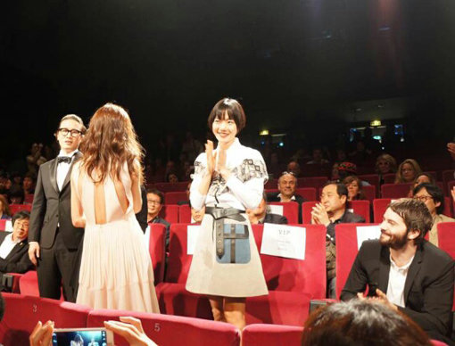 배두나는 상영 직전 가진 무대 인사가 끝나고 짐 스터게스 곁으로 가 두 손을 맞잡고 인사했다. 이어 옆 자리에 나란히 앉아 영화를 관람했다.