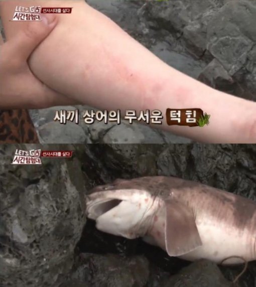 ‘시간탐험대’에 출연한 개그맨 유상무가 새끼 상어에게 물렸다.