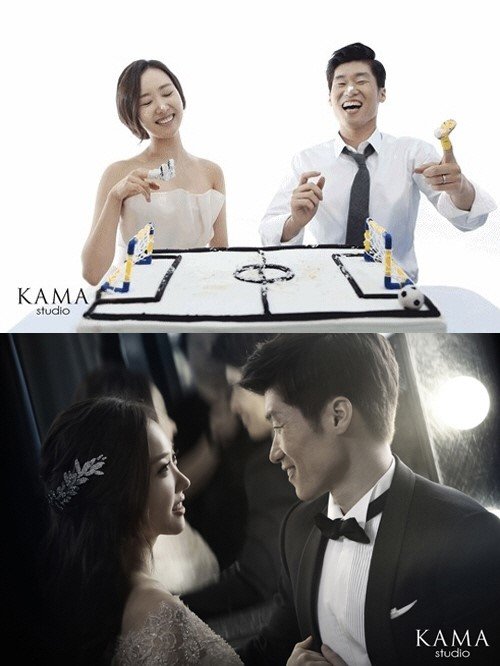 카마스튜디오는 이날 박지성과 김민지의 웨딩화보를 인터넷상에 공개됐다. 두 사람의 웨딩화보는 박지성을 10년 가까이 봐온 카마조 작가가 촬영한 것으로 알려졌다.
