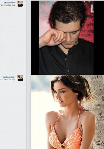 스페인 이비자섬의 치프리아니 레스토랑에서 올랜도 블룸이 비버를 때린 몇 시간 후 비버는 블룸의 전처인 모델 미란다 커가 비키니를 입은 섹시한 사진을 올렸다가 20여분 후에 삭제했다. 그리고 블룸의 사진을 올린 것이다.