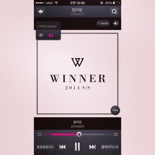공개된 사진은 박보람이 음원 사이트를 통해 위너의 '컬러링'을 재생해 듣고 있는 화면이다.