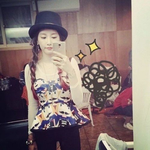 공개된 사진 속 소연은 땋은 머리 스타일에 깜찍한 마술사 모자를 쓴 모습이 담겨있다. 화려한 무늬를 수놓은 상의로 독특한 패션을 선보였다.