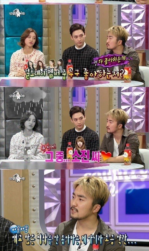 이날 유병재는 “애교가 너무 많은 여자는 부담스럽다”면서 혜리가 아닌 소진을 이상형으로 선택했다. 이어 그는 “털털한 여자가 좋다”며 씨스타 보라를 언급하기도 했다.
