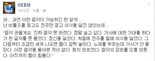 지난 14일 이대화 음악평론가는 자신의 SNS를 통해 SBS '서바이벌 오디션 K팝스타4'(이하 'K팝스타4')의 이진아 '마음대로'에 대한 심사위원 평가에 대한 자신의 생각을 드러냈다.