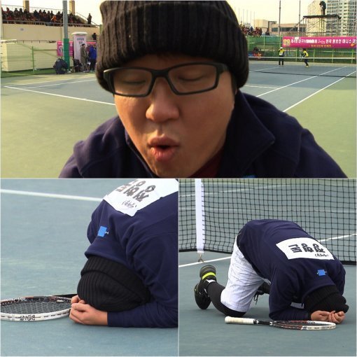 급기야 정형돈은 경기 중 코트에 고정돼있던 카메라에 얼굴을 부딪히는 사고를 당하는가 하면, 코트에 엎드려 절규, 코트에 주저앉아 오열하고 마는 굴욕의 3종 세트를 완성했다.
