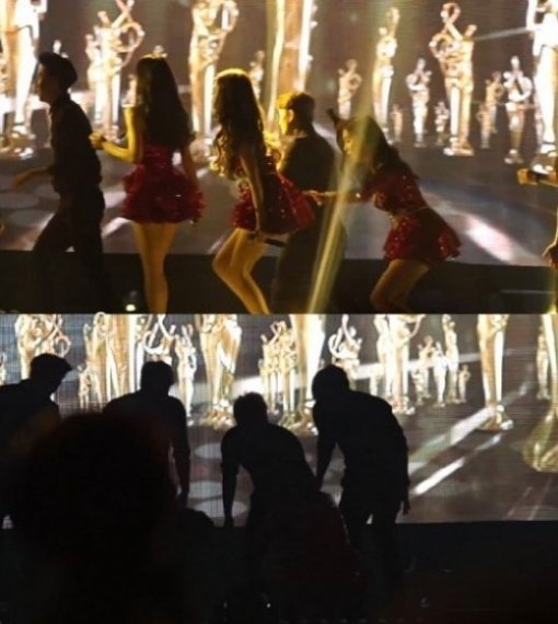 이날 태연은 무대를 끝마치고 퇴장하던 중 약 2m 높이의 무대에서 추락했다.
