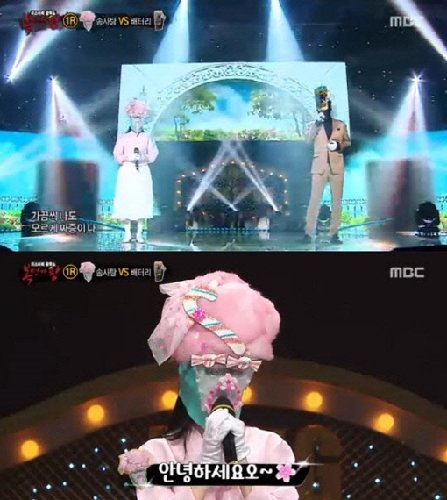이날 ‘복면가왕’ 1라운드에서는 ‘마실 나온 솜사탕’과 ‘사랑의 배터리가 다 됐나 봐요’의 대결이 펼쳐졌다.