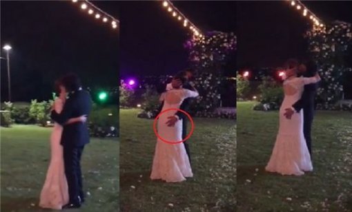 공개된 영상 속에는 결혼식을 마치고 열린 피로연에서 부둥켜안고 춤을 추는 배용준 박수진 부부의 모습이 담겨 있다.