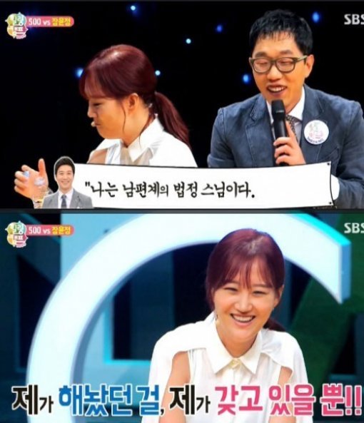 이날 ‘힐링캠프’ 김제동은 장윤정에 “남편 도경완이 ‘나는 남편계의 법정스님이다. 무소유다라고 발언했다”고 밝혔다.
