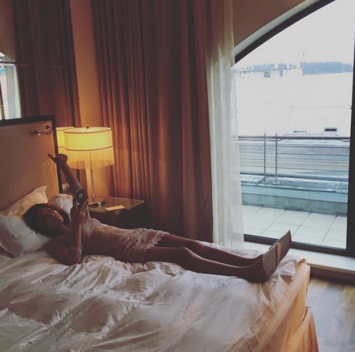 공개된 사진 속 황정음은 침대에 누워 포즈를 취하고 있다. 특히 황정음의 우월한 각선미가 보는 이들의 시선을 사로잡았다.