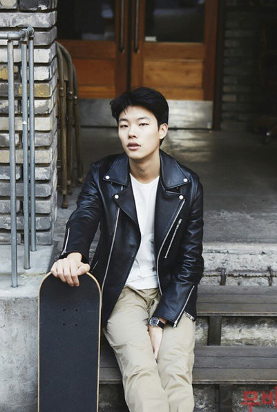 사진에는 검은색 가죽재킷에 베이지색 면바지 차림의 류준열이 계단에 앉아 한 손으로 스케이트보드를 잡고 있는 모습이 담겼다. 그는 시크한 표정과는 달리 다른 한 손을 다리 사이에 끼운 어정쩡한 포즈를 취해 웃음을 자아낸다.