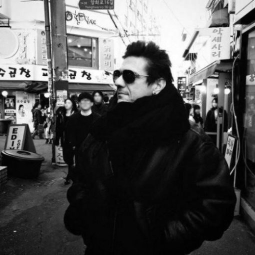 곱창집 간판 등 홍대의 ‘푸근한’ 거리 풍경에 선글라스와 검정색 가죽재킷 차림의 밀젠코 마티예비치의 모습이 의외의 분위기를 자아낸다.